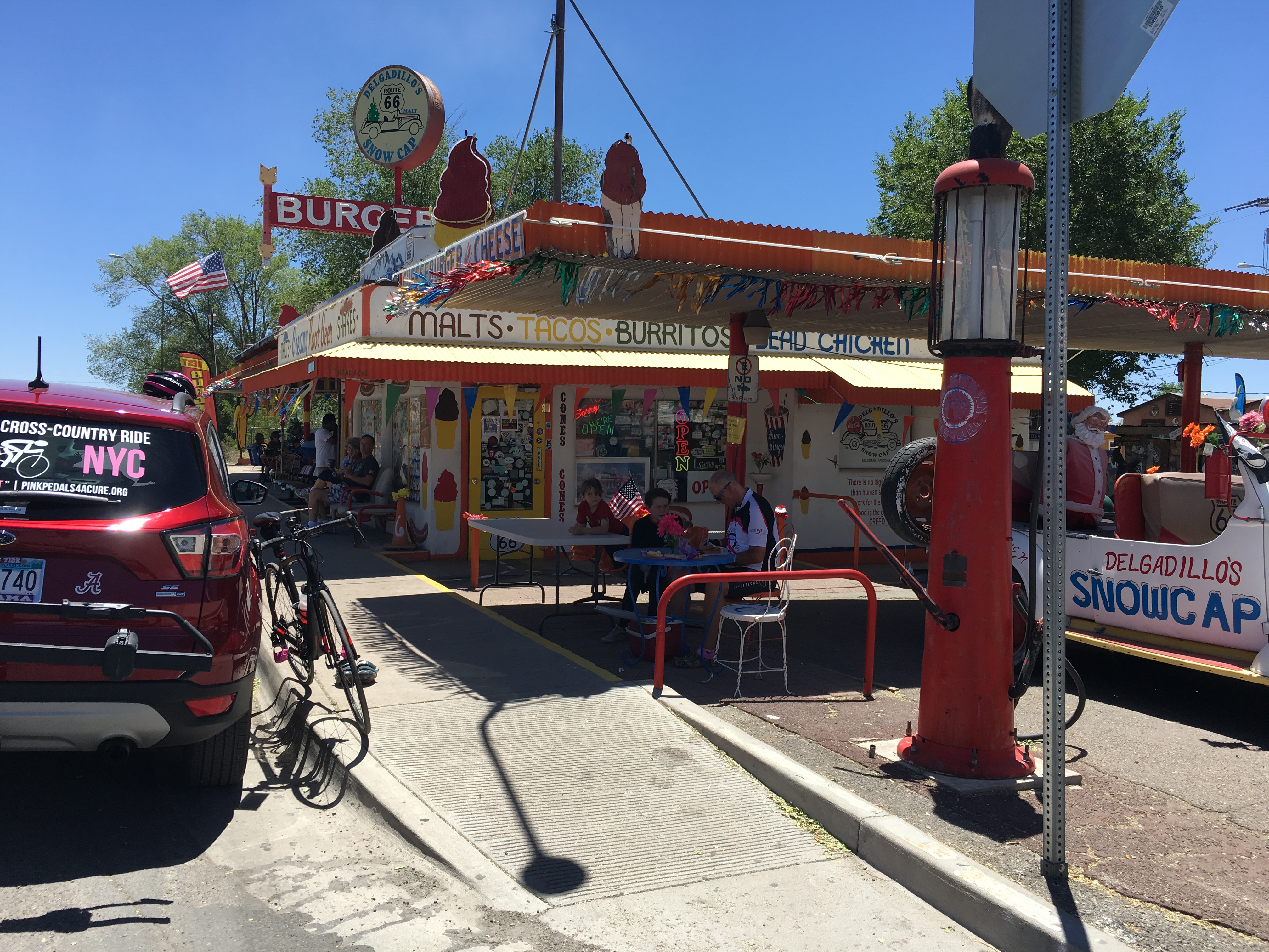 lunch at Seligman 3 Jun8 Published at 4032 × 3024 in 2026 Track The Ride ← Previous Next → Something for the bucket list if you happen to find yourself on Route 66 in Arizona. Like Loading...